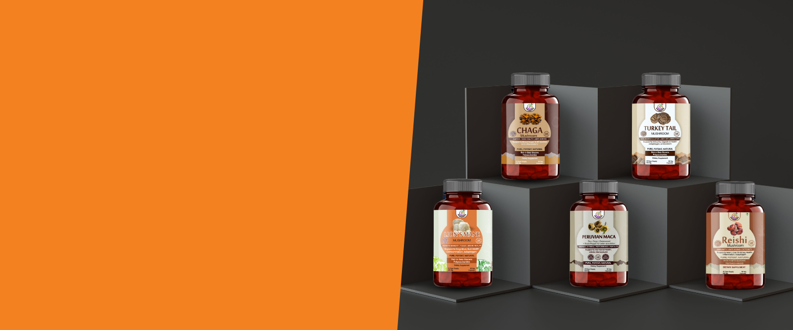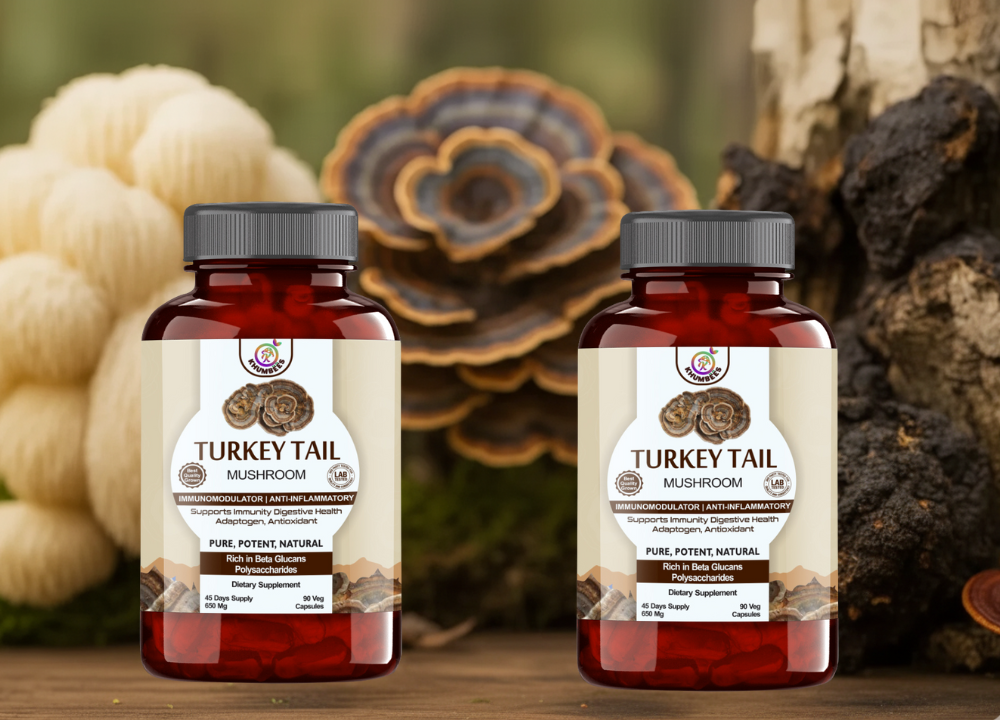 Reishi and Turkey Tail mushrooms help regulate and enhance immune response through powerful bioactive compounds.