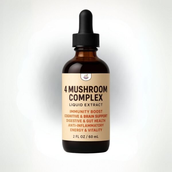 The 4 Mushroom Complex Liquid Extract combines four of the most revered medicinal mushrooms—Reishi, Chaga, Lion’s Mane, and Turkey Tail—into a single, potent formula. Reishi supports stress management, immunity, and heart and liver health, while Chaga provides powerful antioxidant protection and promotes digestive wellness. Lion’s Mane enhances cognitive function, nerve health, and memory, and Turkey Tail strengthens immunity, supports gut health, and delivers additional antioxidant benefits. This concentrated, easily absorbable liquid extract offers a convenient way to promote overall wellness, bolster the body’s natural defenses, and maintain vitality. Traditionally used in Asian medicine, this synergistic blend is now celebrated worldwide for its comprehensive, holistic health benefits.