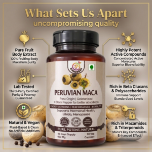 Maca Root Capsules, or Lepidium meyenii, is a cruciferous vegetable native to the high altitudes of the Peruvian Andes mountains. Maca, also commonly called Peruvian Ginseng, is sometimes referred to as the “food of warriors” due to its traditional use by Inca warriors to enhance energy, stamina, and physical performance. It is believed to have been consumed by Inca soldiers to boost their strength and physical capabilities. It has been used for centuries by indigenous populations as both a food source and for its medicinal properties. Maca is considered an adaptogen, meaning it helps the body adapt to and cope with various stressors.